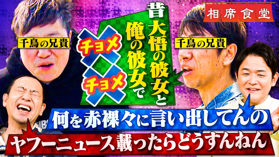 相席食堂 5月6日(火)放送分 千鳥の昔をよく知る「大阪のお兄ちゃん相席」!テンダラー・浜本VS土肥ポン太|バラエティ|見逃し無料配信はTVer!人気の動画見放題