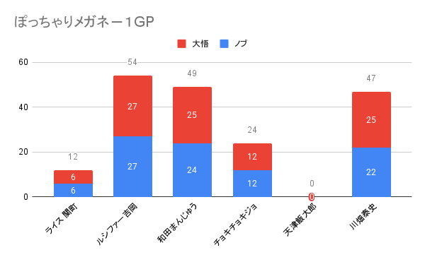 | 順位 | 名前 | 大悟 | ノブ | 点数 |