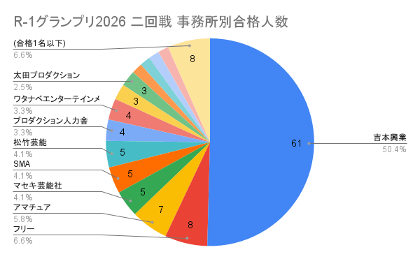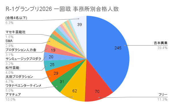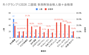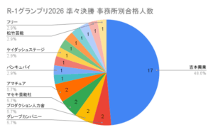 絶対数で言えば一大勢力吉本興業が圧倒的だが合格者のうち4割を占めるのは例年通り