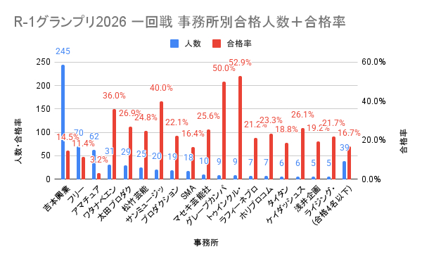 一回戦 事務所別 突破人数データ