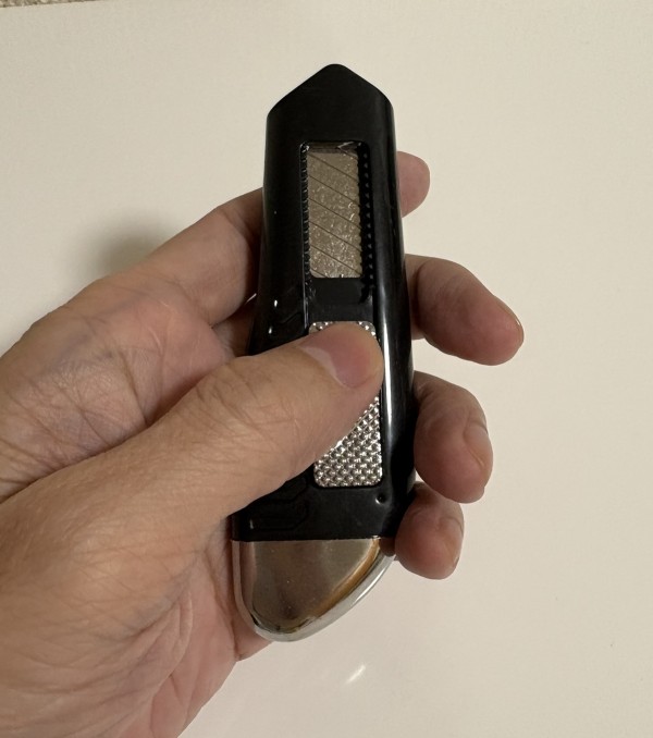 これはスライドして刃を出そうとする瞬間にビリビリが来る商品。