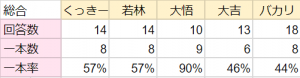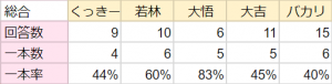 最終問題を残して最下位くっきーとの差はわずかに2ポイント。