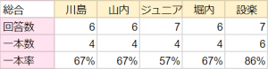 設楽は問題がハマらなかったか、しかし1本は着実に取得。