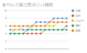 川島、設楽が9ポイントとなりリーチ。
