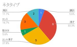 調査したところ、しゃべくり漫才、コント漫才、漫談を合わせて70%以上が「漫才」でした。