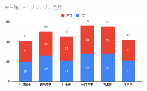 | 2 | 石黒彩 | 27 | 28 | 55 |