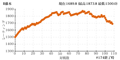 イロレーティングが1年9ヶ月ぶりに1700を割り、1689.8まで低下。