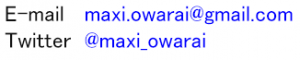 本ブログに関するお問い合わせ・ご指摘に関しましては、以下のメールアドレス、またはツイッターアカウントにて受け付けております。