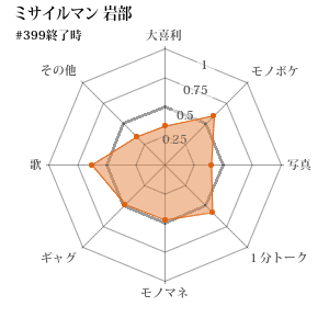 | 249 | 準決 | 後 | 鳥居みゆき | モノマネ | 負 | 81-67 (0.547) | 1520.6 |