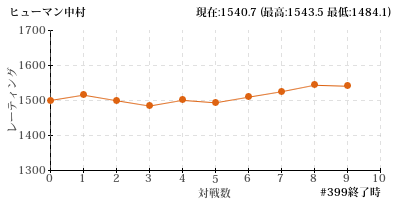 | 放送 | 回戦 | 先/後 | 相手 | ジャンル | 勝敗 | 通算 勝-敗(率) | レート |