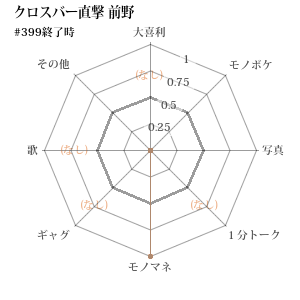 | 61 | 1 | 後 | 紅しょうが 熊元プロレス | モノマネ | 勝 | 1-2 (0.333) | 1483.8 |