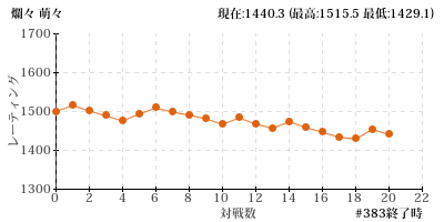 265 | 6 | 先 | 爛々 大国 | モノマネ | 勝 | 2-3 (0.400) | 1493.9 |