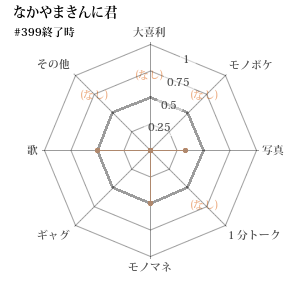 | 71 | 決勝 | 先 | 笑い飯 西田 | モノマネ | 負 | 3-3 (0.500) | 1527.1 |