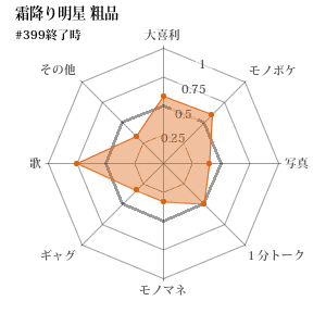 | 26 | 2 | 後 | 霜降り明星 せいや | 1分トーク | 勝 | 10-7 (0.588) | 1556.7 |