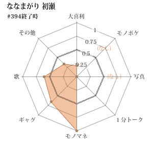 | 368 | 2 | 先 | TKO 木本 | 大喜利 | 負 | 9-10 (0.474) | 1506.5 |