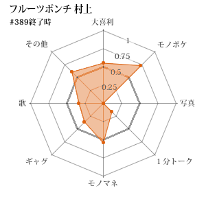 | 236 | 4 | 後 | シャンプーハット 恋さん | 1分トーク | 負 | 19-31 (0.380) | 1462.5 |