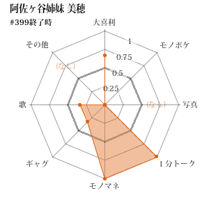 | 119 | A1 | 後 | 阿佐ヶ谷姉妹 江里子 | 歌 | 負 | 3-1 (0.750) | 1543.2 |