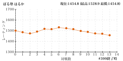 | 放送 | 回戦 | 先/後 | 相手 | ジャンル | 勝敗 | 通算 勝-敗(率) | レート |