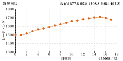 | 放送 | 回戦 | 先/後 | 相手 | ジャンル | 勝敗 | 通算 勝-敗(率) | レート |