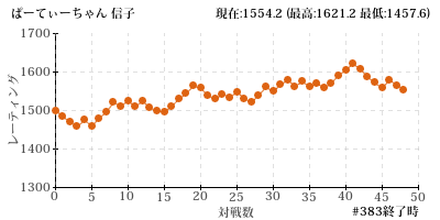 330 | 6 | 後 | ミサイルマン 岩部 | 歌 | 勝 | 16-16 (0.500) | 1579.4 |