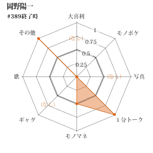 | 267 | 4 | 後 | ちゃんぴおんず 大崎 | モノマネ | 負 | 3-3 (0.500) | 1505.4 |