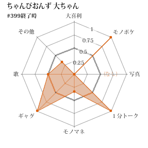 | 259 | 決勝 | 後 | ちゃんぴおんず 大崎 | モノマネ | 勝 | 6-1 (0.857) | 1579.3 |