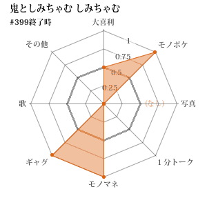 | 343 | 5 | 先 | 鬼としみちゃむ 鬼沢さん | ギャグ | 勝 | 4-4 (0.500) | 1516.6 |