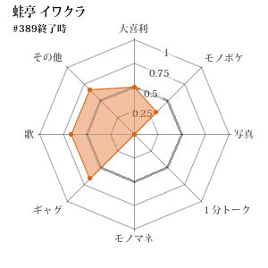 | 243 | 2 | 先 | 紅しょうが 熊元プロレス | 大喜利 | 負 | 12-14 (0.462) | 1506.8 |