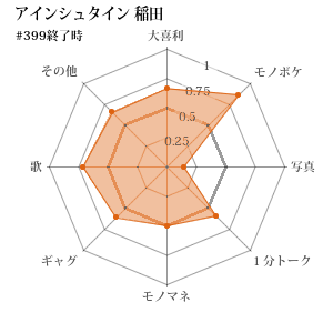 | 366 | 決勝 | 後 | ネコニスズ 舘野 | モノマネ | 勝 | 74-42 (0.638) | 1666.4 |
