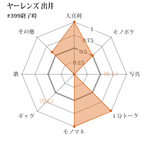 | 325 | 5 | 後 | にゃんこスター アンゴラ村長 | モノマネ | 勝 | 4-1 (0.800) | 1562.6 |