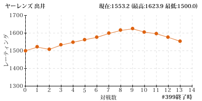 | 放送 | 回戦 | 先/後 | 相手 | ジャンル | 勝敗 | 通算 勝-敗(率) | レート |