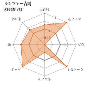 | 363 | 6 | 後 | ぱーてぃーちゃん 信子 | 1分トーク | 勝 | 14-9 (0.609) | 1623.5 |
