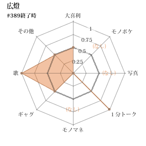| 381 | 6 | 後 | アイデンティティ 田島 | 大喜利 | 勝 | 5-2 (0.714) | 1561.8 |