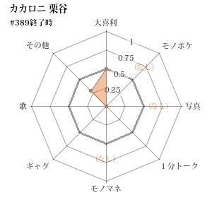 | 383 | 1 | 先 | ザブングル加藤 | 大喜利 | 負 | 3-8 (0.273) | 1444.1 |