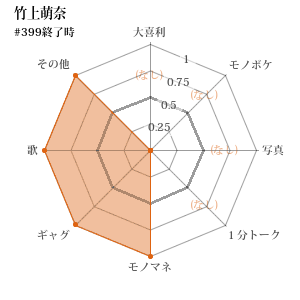 | 368 | 6 | 後 | すゑひろがりず 南條 | ギャグ | 勝 | 3-0 (1.000) | 1546.1 |