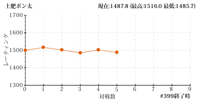 | 10 | 3 | 先 | ミサイルマン 岩部 | 歌 | 負 | 1-2 (0.333) | 1485.7 |