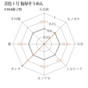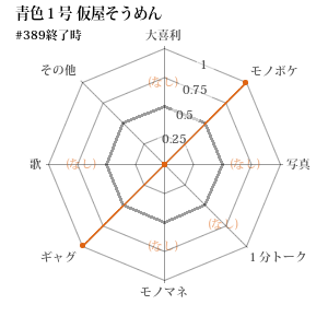 | 385 | 3 | 後 | や団 ロングサイズ伊藤 | ギャグ | 勝 | 2-0 (1.000) | 1541.2 |